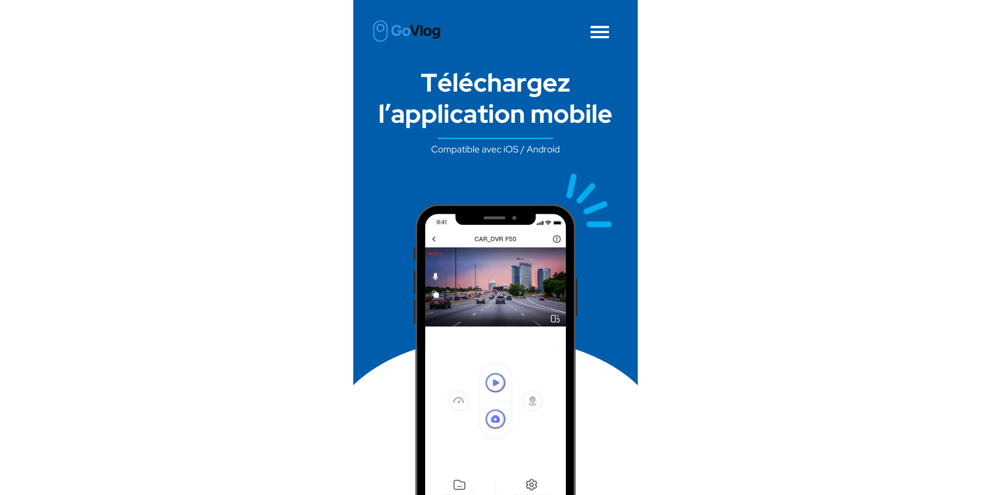 Sur votre téléphone : La GoVlog se connecte en Wi-Fi via une application mobile dédiée nommé "Viidure" et/ou "Sport DV", ce qui permet de transférer, modifier et partager vos vidéos instantanément.
